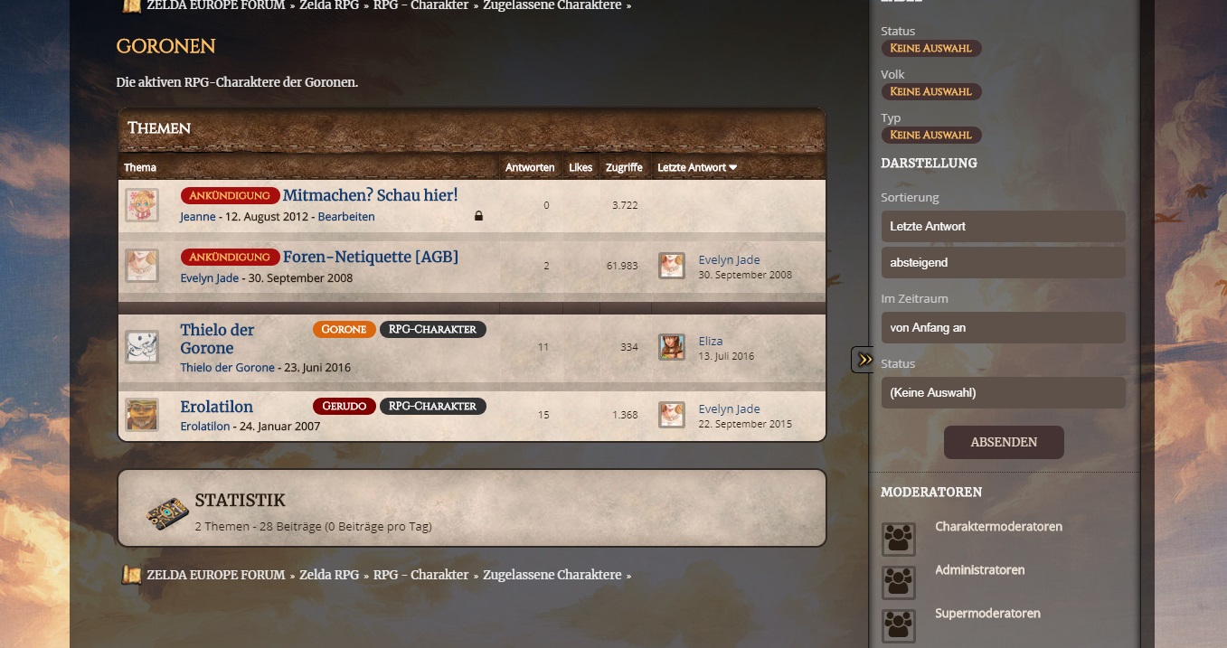 Ich kann mein Volk in meinem Charakterbogen ändern, dies wird dann auch so in der Übersicht angezeigt. Ero verbleibt aber z.B. bei den Goronen, wenn ich ihn in eine(n) Gerudo umwandel .