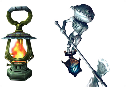 Im folgenden Bild haben wir für euch das Artwork der normalen Laterne (links) zusammen mit einem Irrlicht und seiner Laterne (rechts) zum Vergleich: