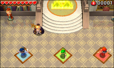 Grob gesehen handelt es sich hier um einen weiteren Four Swords-Titel, nur dass hier alles auf genau drei Spieler ausgelegt wurde, anstatt zwei bis vier. Aber es folgt demselben Prinzip, dass man sich gemeinsam durch verschiedene Level schlägt, anstatt im Alleingang eine offene Welt zu erkunden.