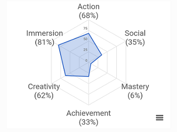 Hm, es könnte natürlich sein, dass Ero da einfach eine Ausnahme von der Regel ist. Für die These spricht immer noch, dass unsere Werte bei Agreeableness bezeichnend höher sind und du mit dem höchsten Wert auch im Bereich "Social" die höchste Prozentzahl von allen dreien hast. Ich denke aber, dass da natürlich andere Faktoren auch mit reinspielen. Ero ist z.B. auch von uns dreien als einziger introvertiert, was auch durchaus Einfluss auf den sozialen Aspekt haben kann. Introvertierte Menschen sind schließlich oft lieber allein und müssen sich tendenziell von sozialen Events erholen (durch z.B. Games), während für Extravertierte ja meist das gemeinsame Spielen an sich schon die Erholung ist und sie das ganze dementsprechend viel mehr suchen.